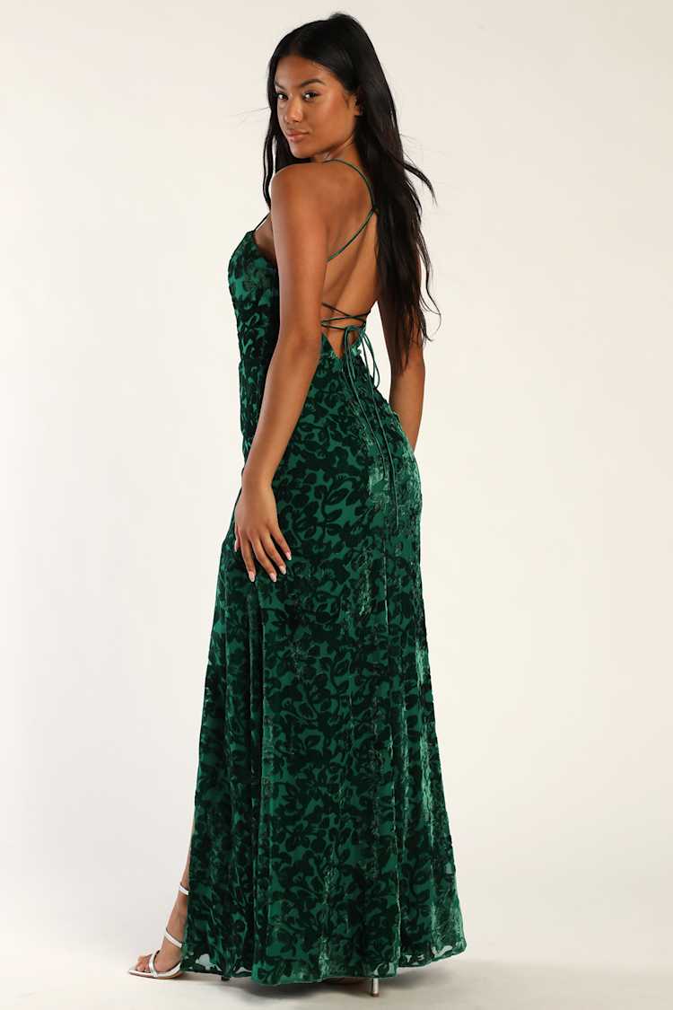 Emerald Green Maxi Dress Burnout Velvet Dress Lace Up Dress Lulus